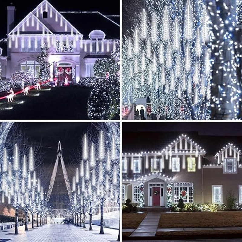 Litehom Rain Drop LED Meteor Shower 192 LEDs 8 Tubes (11.8") | Icicle Falling Effect for Diwali, Christmas, New Year, Home & Outdoor Decoration, Balcony, Tree, Party Decor (Cool-White)