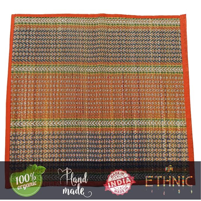 Montelal Store Handmade Korai Pai Kusha Grass Pooja Aasan Sitting Floor Mats Orange -Set of 2 Pcs