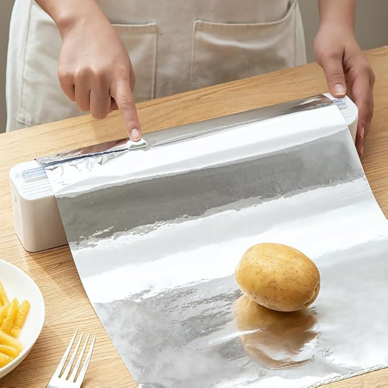 ORGANIZERS Plastic Wrap Dispenser with Built-in Slide Cutter | Kitchen Roll Holder for Cling Film, Aluminum Foil & Food Wrapping Paper | Foil Paper Cutter & Holder