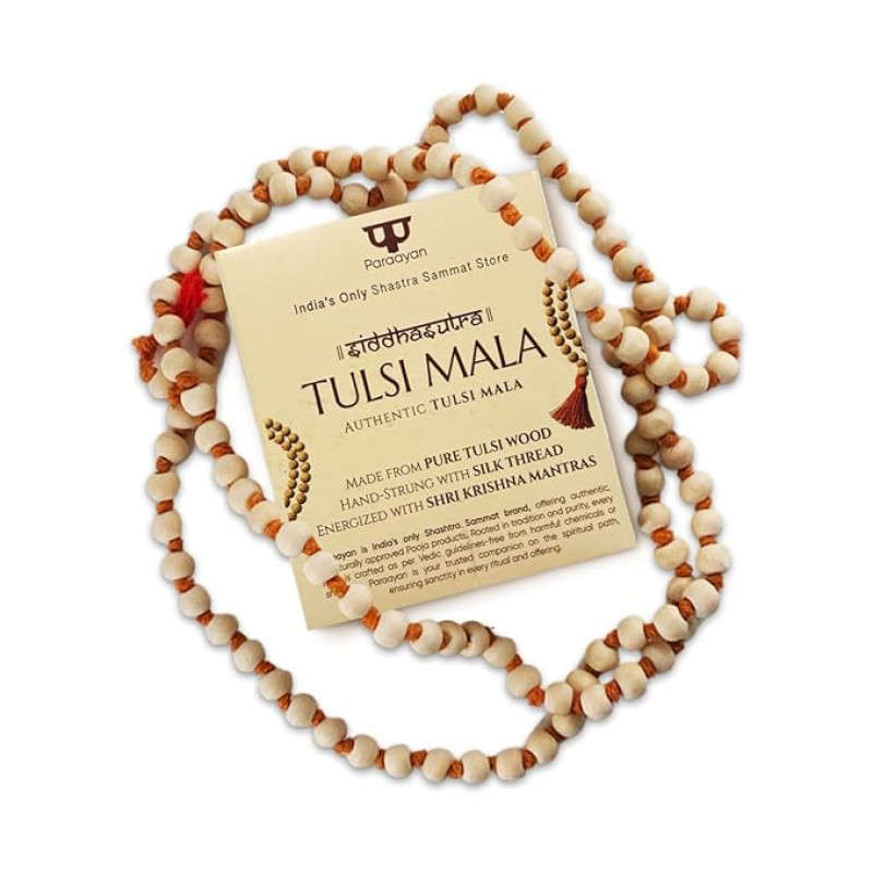 Paraayan Pure Tulsi Mala 108 Beads Original | 7mm Beads Size | Crafted from Pure Tulsi Beads | Best for Meditation Jaap Mala and Pooja | Pack of 1
