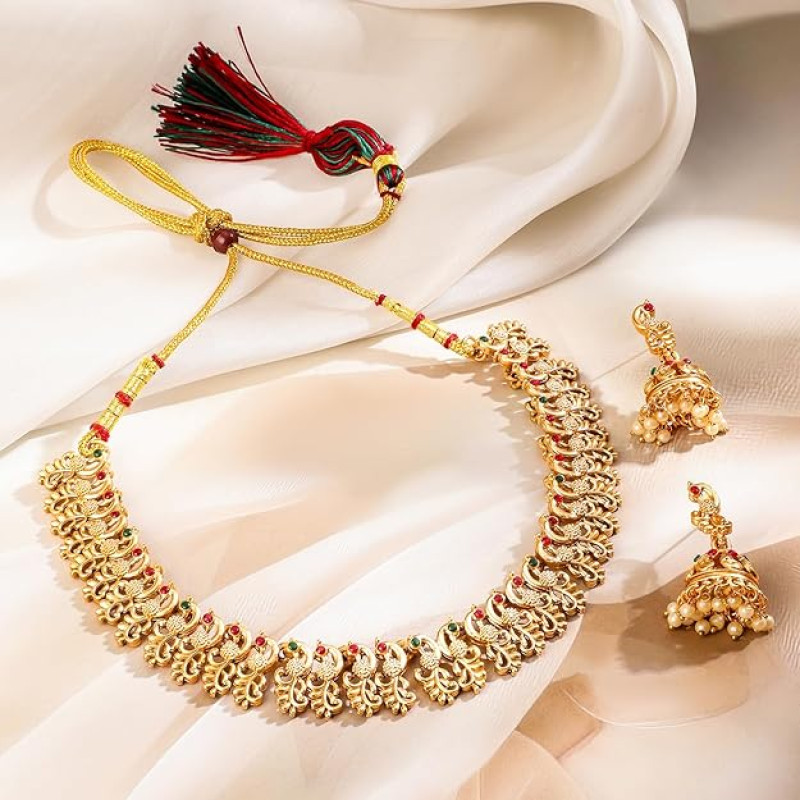 Plated Ruby/Red/Pink & Emerald/Green stone studded Handcrafted Jewellery Set - Ideal for Weddings & Special Occasions