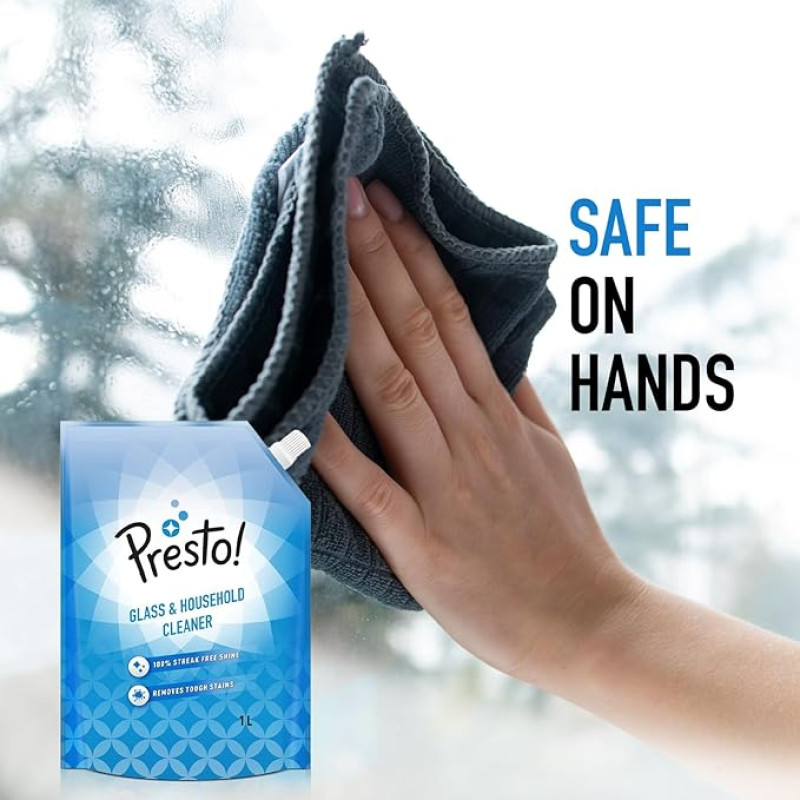 Presto! Glass & Household Cleaner | 2 Litre Refill Pouch | 1 L X 2 Packs | Suitable For Glass, Mirrors, Appliances Like Microwaves, Ceramic Tiles, Glazed Tiles, Granite