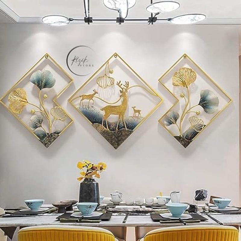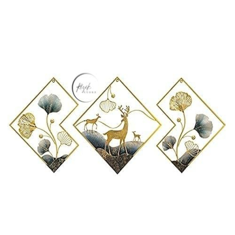 RIZIK STORE® Metal Abstract Figures handcrafted Wall Sculpture wall art multicolor for Home Decoration, Living room, drwaing room & Bedroom (PACK OF 3) WDD-NEW (DEER GOLD)