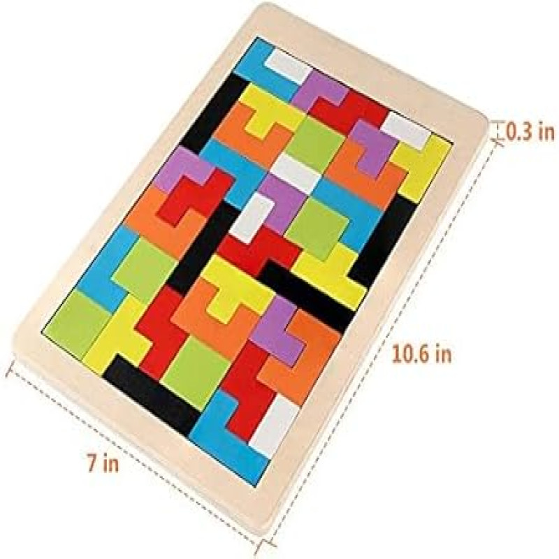 Seven Moon Wood Intelligence Wooden Tetris Puzzle Toy Colorful Brain Development & Educational Game for Kids (3+ Years), Montessori Logic Block Toy for Boys & Girls