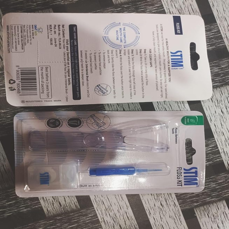 Stim Floss kit Holder, Mint Flavour for Men & Women- Plastic Dental Floss Oral Care Stick for Unisex Adults (Pack of 2)