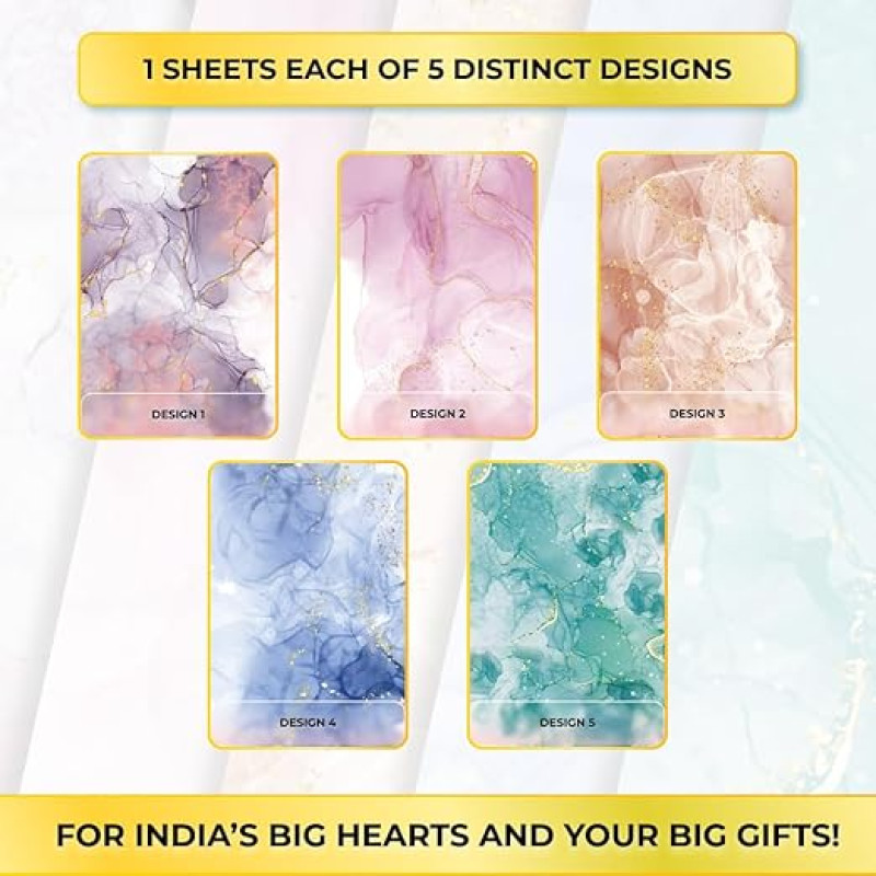 Suffix Retail ® - 5 Pcs Gift Wrapping Paper Sheets with Gift Ribbons & Gift Nametag Stickers | Gift Wrapping Paper Sheets - 19 x 28 INCHES (Multi, 5 Count (Pack of 1))