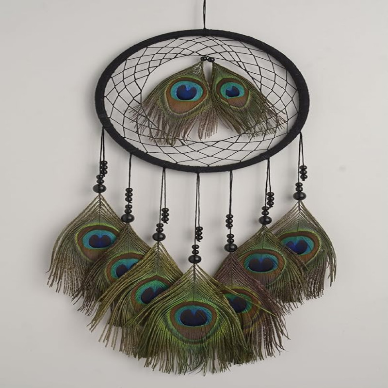 THE URBAN ARTISTIC Wooden Peacock Feather Dream Catcher for Positive Energy Decorative Showpiece Wall Hanging, Wall decor , Bedroom, Living Room Decor, Wall Vastu (18/45 cm) Black