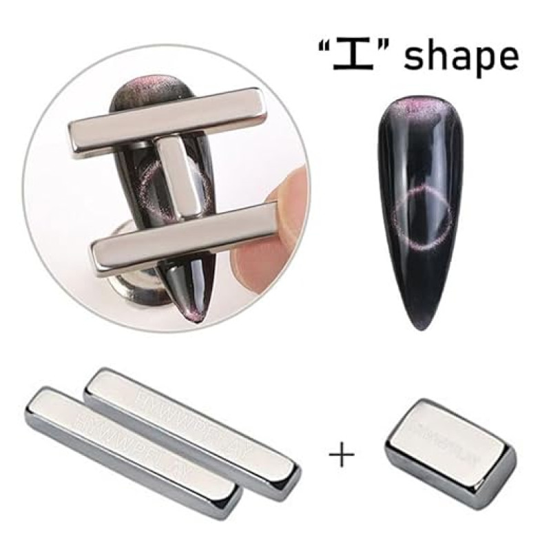 THR3E STROKES 5 Pieces Cat Eye Nail Magnet for Magnetic Gel Polish - Wood Stick Design Tool for DIY Home, Salon, Studio (5PCS SET)