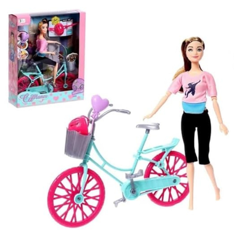 Tocexy Fashion Doll with Bicycle Play Set | Trendy Doll with Helmet, Puppy Basket & Accessories | Pretend Play Cycling Toy for Girls | Educational & Fun Role Play Set for Kids Ages 3+