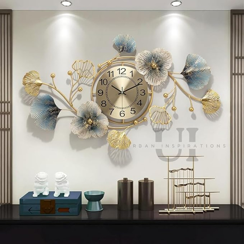 URBAN INSPIRATIONS Metal Wall Clock Big Antique Decorative Home Interior Stylish Watch & Silent Machine Gold for Bedroom/Living Room- 70CM,Analog