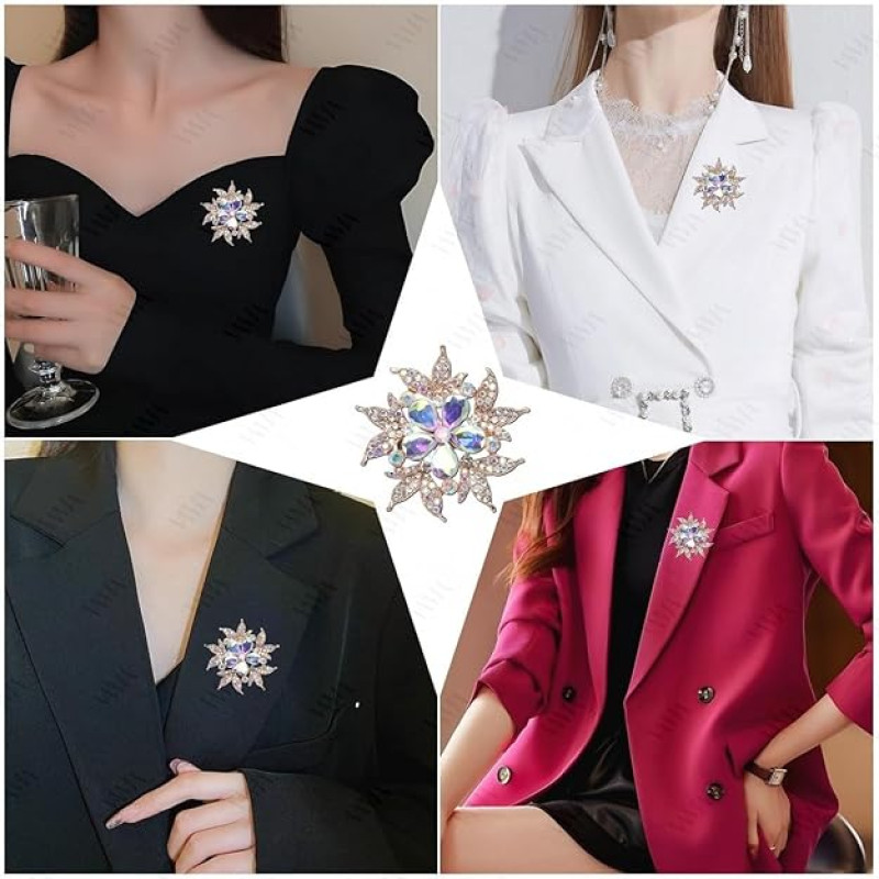 VAMA Fashions Crystal Rhinestone Saree Brooch Pins Coat Dress Gown Shawl Wedding Bridal Flower Brooch for Women Girls