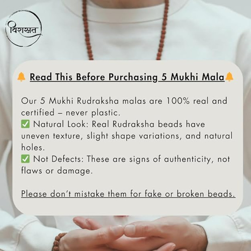 Virasit 5 Mukhi Rudraksha Mala 108 Beads Original Certified | Natural Panchmukhi Rudraksha Japa Mala for Men & Women | Jaap Mala for Meditation, Shiv Puja, Yoga, Prayer, Chanting | 6mm Size